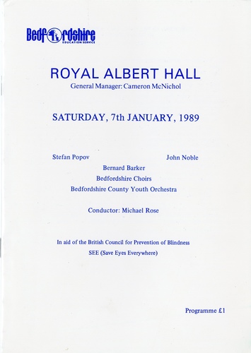 | Set List | 'God Save the Queen' (The National Anthem), arr. Walton, 'Hymne des Marseillais' (La Marseillaise), arr. Berlioz (Bedfordshire County Youth Orchestra), 'Festival Prelude, Op.61', R Strauss (Bedfordshire County Youth Orchestra), 'Cello Concerto in E minor,Op.85', Elgar (Stefan Popov, Bedfordshire County Youth Orchestra), INTERVAL 'Belshazzar's Feast', Walton (John Noble, Bedfordshire County Youth Orchestra) |