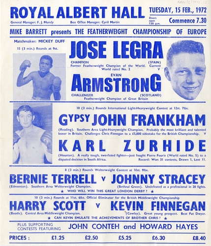 Set ListWelterweight - Bernie Terrell (Edmonton) v Johnny Stracey (Bethnal Green),