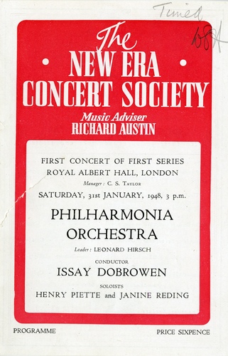| Set List | 'God Save the King' (The National Anthem), 'Overture' from Le Carnaval Romain, Berlioz, 'Symphony No.5 in E Minor, Op.95'(New World), Dvorak, 'Concerto for Two Pianos and Orchestra', Milhaud (Henry Piette, Janine Reding), 'Le Poeme De L'Extase', Scriabin |