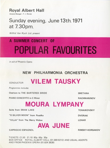 | Set List | 'Overture' from The Bartered Bride, Smetana, 'Walk To The Paradise Garden' (A Village Romeo and Juliet), Delius, 'Piano Concerto No.2 in C Minor', Rachmaninoff (Moura Lympany), 'Swan Lake Suite', Tchaikovsky, 'O Silver Moon' (Rusalka), Dvorak (Ava June), 'Vilja' from The Merry Widow, Lehar (Ava June), 'One Fine Day' from Madama Butterfly, Puccini (Ava June), 'Capriccio Espagnol', Rimsky-Korsakov |