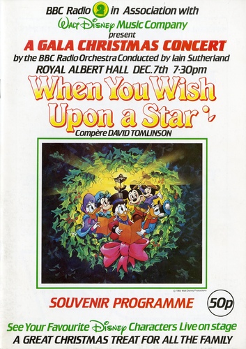| Set List | 'When You Wish Upon a Star' (BBC Radio Orchestra), 'Lets Go Fly a Kite' (BBC Radio Orchestra), Mary Poppins Selection - 'Spoonful of Sugar', 'Chim Chim Cheree', 'Supercalifragilistic' (Joan Savage), 'Love is a Song' from Bambi (Peter Morrison), 'Little April Showers' from Bambi (St. Winifred's School Choir), Cat Medley - 'Aristocats' from The Aristocats, 'Siamese Cat Song' from The Lady and the Tramp, 'Thomas O'Malley Cat' from The Aristocats, 'Everybody Wants to be a Cat' from The Aristocats (Stutz Bear Cats), 'The Second Star to the Right' from Peter Pan (Pamela Field), 'Hi Diddle Dee Dee' from Pinocchio (Russell Grant), 'Journey Through Fantasia' - 'Toccata and Fugue', J S Bach, 'Night on the Bare Mountain', Mussorgsky, arr. Rimsky Korsakov, 'Dance of the Sugar Plum Fairy', Tchaikovsky, 'Trepak', Tchaikovsky, 'The Sorcerer's Apprentice', Dukas, 'Dance of the Hours', Ponchielli (BBC Radio Orchestra), 'The Beautiful Briny' from Bedknobs and Broomsticks (St. Winifred's School Choir), 'Zip-a-dee-doo-dah' from Song of the South (Peter Morrison), 'Give a Little Whistle' from Snow White (Russell Grant), 'Davy Crockett, King of the Wild Frontier' (John McCarthy Singers), 'When You Wish Upon a Star' from Pinocchio (Pamela Field) INTERVAL (Interval talk - Jean Challis) 'I Wanna Be Like You' from Jungle Book (Stutz Bear Cats), 'Bare Necessities' from Jungle Book (Stutz Bear Cats) 'A Dream is a Wish' from Cinderella (Pamela Field), 'I've Got No Strings' from Pinocchio (Russell Grant), 'It's a Small World Medley' - 'It's a Small World', 'Who's Afraid of the Big Bad Wolf', 'Bibbidi-Bobbidi-Boo', 'Let's Go Fly a Kite' (St. Winifred's School Choir), 'Bella Notte' from Lady and the Tramp (Peter Morrison), 'He's a Tramp' from Lady and the Tramp (Joan Savage), 'Sleeping Beauty Waltz' (BBC Radio Orchestra), Finale - 'The Story of Snow White and the Seven Dwarfs' 'I'm Wishing', 'One Song', 'With a Smile and a Song', 'Whistle While You Work', 'Heigh Ho', 'Silly Song', 'Someday My Prince will Come' (Diane Keen, Full Company) |