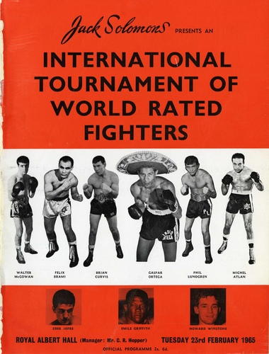 | Main Performers | Walter McGowan (Scotland), Felix Brami (Tunis), Brian Curvis (Swansea), Gaspar Ortega (Mexico), Phil Lundgren (Bermondsey), Michel Atlan (France), Young McCormack (Dublin), Bob Nicolson (Farnborough), Dave Ould (Bermondsey), Rudolph Vaughan (Oxford), Dennis Read (Chelsea), Ian McKenzie (Ayr), Ron Woods (Catford), Ray Fallone (Battersea) - boxers |