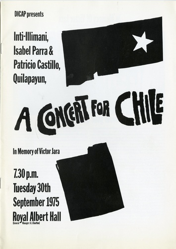 Performance TitleA Concert for Chile in Memory of Victor Jara - Inti-Illimani, Isabel Parra and Patricio Castillo, Quilapayun, in aid of Chile Committee for Human Rights