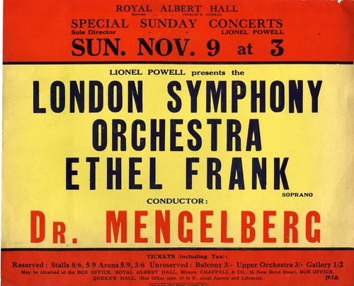 | Set List | 'God Save the King' (The National Anthem), 'Prelude', 'Meistersinger', Wagner (London Symphony Orchestra), 'Symphony No.1', Beethoven (London Symphony Orchestra), 'O Gioja Nube Leggiera', 'Il Segreto Di Susanna', Wolf-Ferrari (London Symphony Orchestra, Ethel Frank), 'Siegfried Idyll', Wagner (London Symphony Orchestra), Songs: 'Traum Durch Die Dammerung', Strauss (Ethel Frank, London Symphony Orchestra), 'Zueignung', Strauss (Ethel Frank, London Symphony Orchestra), 'Meinem Kinde', Strauss (Ethel Frank, London Symphony Orchestra), 'Cacilie', Strauss (Ethel Frank, London Symphony Orchestra), Symphonic Poem: 'Les Preludes', Liszt (London Symphony Orchestra) |