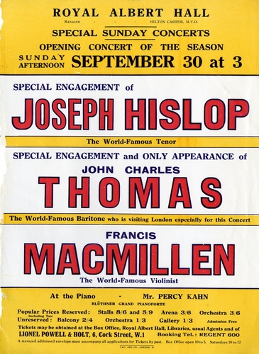 | Set List | Violin Soli - 'Romance', Sinding, (Francis MacMillen) 'Prelude and Alegro' Pagnani-Kreisler, (Francis MacMillen), Aria - 'Una Furtiva Lagrima' (L'Elisir d'Amore), Donizetti, (Joseph Hislop), Prologue - 'Pagliacci', Leoncavallo, (John Charles Thomas), Violin Soli - 'Bacarolle', Macmillen, (Francis MacMillen), 'Gigue', Rust, (Francis MacMillen), 'Intro duction and Tarentelle', Sarasate, (Francis MacMillen), Songs - 'At Night', Rachmaninov, (Joseph Hislop), 'Tears of Joy', Percy B Kahn, (Joseph Hislop), 'Song of the Palanquin Bearers', Martin Shaw, (Joseph Hislop), 'I Love Thee' Grieg, (Joseph Hislop), Songs - 'The Crying of Water', Campbell-Tipton, (John Charles Thomas), 'Trees', Frank L Tours, (John Charles Thomas), 'Nocturne', Pearl G Curran, (John Charles Thomas), 'Nichavo' (Nothing Matters), Mana-Zucca, (John Charles Thomas), Violin Soli - 'Serenade' Arensky, (Francis MacMillen), 'Nijinsky', Macmillen, (Francis MacMillen), 'Polonaise, D major', Wieniawsky, (Francis MacMillen), Duet - from Act IV, 'La Boheme', Puccini, (Joseph Hislop, John Charles Thomas) |