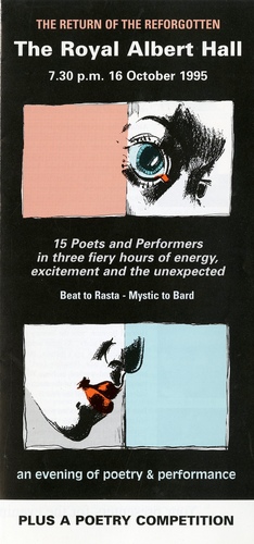 The promoter offered every ticket holder the opportunity to submit a poem. The winner was invited on stage to read their poem and was included in an anthology of the evening's performances which was published in 1996. |