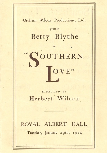 | Performance Notes | 'Southern Love' is a 1924 British silent black and white film directed by Herbert Wilcox (1890-1977) and made in Vienna. The films stars Betty Blythe (Dolores), Herbert Langley (Pedro), Warwick Ward (Dick Tennant), Liane Haid (Countess de Silva), Randle Ayrton (Count de Silva) and Hal Martion (Gypsy). The film is a melodrama of a female gipsy who escapes a forced marriage out of love for another and earns her living as a ballerina in the big city until she is reunited with her love. It is based on the verse drama 'The Spanish Student' by Henry Wadsworth Longfellow. It is known by the alternative title 'Woman's Secret'.