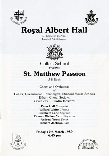 | Choirs | Choirs of Colfe's, Queenswood, Prendergast, Stratford House Schools |