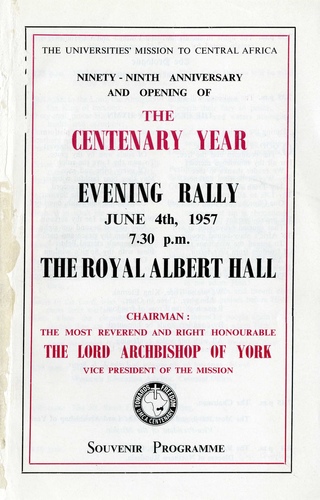 | Main Performers | Lord Archbishop of York - chairman, Rev. John Kingsnorth, Rev. Canon Habil Chipembele, Miss F H Gwilliam, Rt. Rev. Leslie E.Stradling, Arnold Greir - organ |