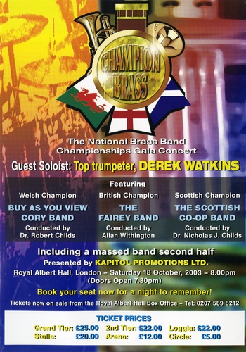 | Main Performers | Derek Watkins - trumpet, Gareth Brindle - baritone, David Childs, Morgan Griffiths - euphoniums Christopher Thomas - trombone |