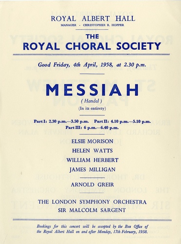 | Main Performers | Elsie Morison, Helen Watts, William Herbert, James Milligan - vocals, Arnold Greir - organ, Dennis Clift - trumpet |