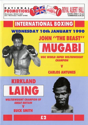 | Set List | Welterweight - Gary Logan (Croydon) v Julian Eavis (Yeovil), Heavyweight - Henry Akinwande (Lewisham) v John Fairbairn (Newcastle), Middleweight - John 'The Beast' Mugabi (Uganda) v Carlos Antunes (Brazil), Middleweight - Neville Brown (Burton) v Colin Ford (Paddington), Welterweight - Kirkland Laing (Hackney) v Buck Smith (Oklahoma, USA), Featherweight - Gary Hickman (Sunderland) v Miguel Mathews (Wales), Featherweight - John O'Meara (Hanwell) v Pete Buckley (Birmingham) |