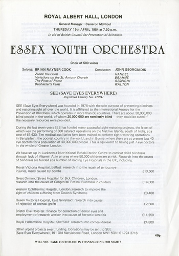 | Main Performers | David Chesterman, (British National Committe for the Prevention of Blindness) Brian Rayner Cook - speakers |