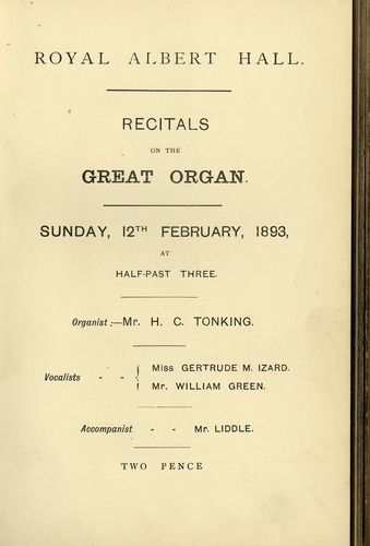 | Set List | Organ: 'March in B Flat', E Silas, Song: 'The City of Night', Lawrence Kellie, Organ: 'Cavatina', Joachim Raff, Recit. and Air: 'Come, Margarita, Come', Sullivan, Organ: 'Air with Variations'(Synphony in D), Haydn, Air: 'Jerusalem' (Gallia), Gounod, Organ: Romance 'Tannhausr', Wagner, Song: 'Evening Song', Blumenthal, Organ: 'March 'War of Priests' (Athalia), Mendelssohn |