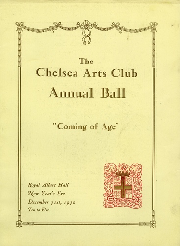 Founded in 1891 The Chelsea Arts Club is a members club for artists, which for 50 years from 1908 held an annual costumed New Year's Eve ball, which was an infamous part of London's social calendar. After two years at the Royal Opera House the extravagant ball proved so popular it moved to the Royal Albert Hall where it stayed until 1958. The balls attracted media attention with their lavish theatrical sets, multiple orchestras, raucous midnight carnivals and balloon drops and crowds of up to 10,000 socialites, bohemian artists, actors, and ordinary Londoners in elaborate and often scandalous fancy dress dancing until 5am.