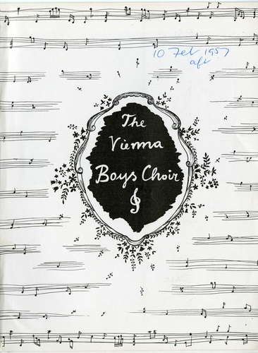 | Set List | National Anthem 'God Save The Queen' (Vienna Boys' Choir) 'Austrian National Anthem' (Vienna Boys' Choir), 'Haec Dies', Jacobus Gallus (Vienna Boys' Choir), 'O Sacrum Convivium', Giovanni Croce (Vienna Boys' Choir), 'O Regem Coeli', T L Da Vittoria (Vienna Boys' Choir), 'Ascendit Deus', Jacobus Gallus (Vienna Boys' Choir), '23rd Psalm', Schubert (Vienna Boys' Choir), 'Das Grosse Halleluja', Schubert (Vienna Boys' Choir), 'Brinderlein Frin', Drechsler (Vienna Boys' Choir), 'Kohskrechtbaum,' (Vienna Boys' Choir), 'A.B.C.', Mozart (Vienna Boys' Choir), 'Figuarus Knupfork' (Vienna Boys' Choir), 'Bastien and Bastienne', Mozart (Vienna Boys' Choir), 'Bandel Trio', Mozart (Vienna Boys' Choir), 'Mariae Lullaby', Max Reger (Vienna Boys' Choir), 'Sarie Marais' (Vienna Boys' Choir), 'Im Fruhtau' (Vienna Boys' Choir), 'Aba Heidschi' (Vienna Boys' Choir), 'Sangerlust Polka', JStrauss (Vienna Boys' Choir), 'The Blue Danube Waltz', JStrauss (Vienna Boys' Choir), 'Hoamatland' (Vienna Boys' Choir) |