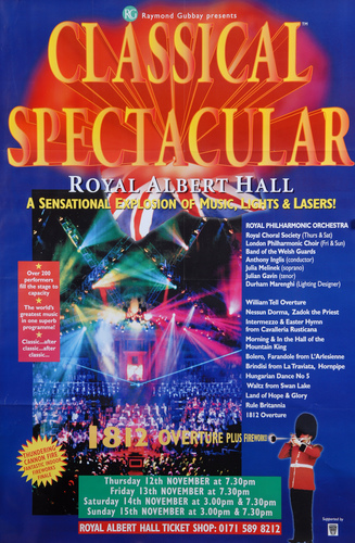 | Set List | 'Farandole (L'Arlesienne Suite No. 2)', Bizet (Royal Philharmonic Orchestra), 'William Tell Overture', Rossini (Royal Philharmonic Orchestra), 'The Thunderer', Sousa (Royal Philharmonic Orchestra), 'Zadok the Priest', Handel (Royal Choral Society, Royal Philharmonic Orchestra), 'Morning' and 'In the Hall of the Mountain King' from Peer Gynt, Grieg (Royal Philharmonic Orchestra), 'Brindisi' from La Traviata,Verdi (Julia Melinek, Julian Gavin, Royal Choral Society, Royal Philharmonic Orchestra), 'Bolero', Ravel (Royal Philharmonic Orchestra), 'Pomp and Circumstance March No.1', Elgar (Royal Choral Society, Royal Philharmonic Orchestra) INTERVAL 'Light Cavalry Overture', Suppe (Royal Philharmonic Orchestra), 'Intermezzo' and 'Easter Hymn' from Cavalleria Rusticana, Mascagni (Julia Melinek, Royal Choral Society, Royal Philharmonic Orchestra), 'Hungarian Dance No.5', Brahms (Royal Philharmonic Orchestra), 'Fantasia on British Sea Songs', Wood (Royal Philharmonic Orchestra), 'Rule Britannia!', Arne' (Royal Choral Society, Royal Philharmonic Orchestra), 'Waltz' from Swan Lake, Tchaikovsky (Royal Philharmonic Orchestra), 'Nessun Dorma' from Turandot, Puccini (Julian Gavin, Royal Choral Society, Royal Philharmonic Orchestra), '1812 Overture', Tchaikovsky (Royal Philharmonic Orchestra, Band of The Welsh Guards) |