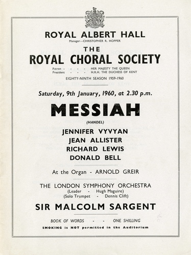RAHE/1/1960/2Royal Choral Society - Handel's 'Messiah' 9 January 1960