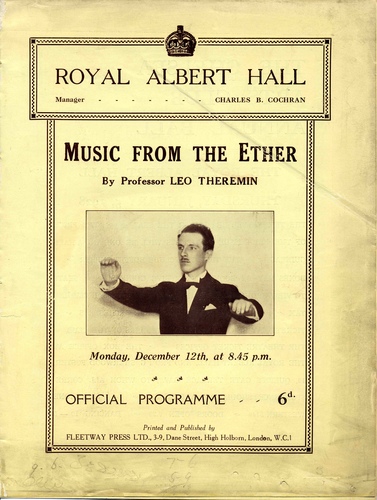 | Performance Notes | Russian physicist Professor Leo Theremin introduced his new Theremin apparatus which required no physical contact with the instrument to create eerie electronic sounds. Theremin's appearance her was part of a European tour demonstrating his invention before heading to the US to patent the instrument still used today by rock musicians and classical composers.