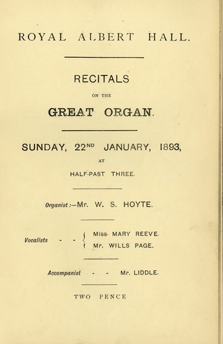 | Set List | Organ: 'Overture in C Major', Mendelssohn, Recit. and Air: 'And Journeyed' (St. Paul), Mendelssohn, Organ: 'Air with Variations', Spohr, Recit and Air: 'In Native Worth' (Creation), Haydn, Organ: 'Fantasie of Sicillian Mariner's Hymn', Lux, Song: 'Tears', Cowen, Organ: 'Concerto in G Minor', Handel, Air: 'Be Thou Faithful' (St. Paul), Mendelssohn, Organ: 'Pastorale', Lemaire, Organ: 'Scherzo', Best |
