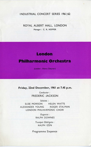 | Main Performers | George Barker, Elsie Morison, Helen Watts, Alexander Young, Roger Stalman - vocals, Ralph Downes - organ, Ralph Izen - trumpet obbligato |