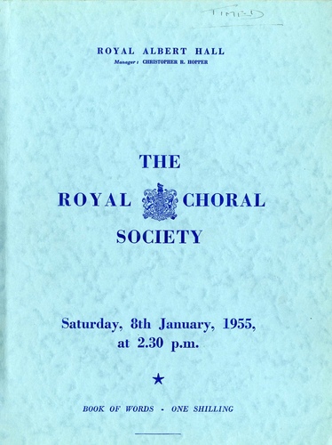 Performance TitleRoyal Choral Society (Eighty-Fifth Season 1954-1955) - Handel's 'Messiah' - One Thousandth Perfomance by the Royal Choral Society