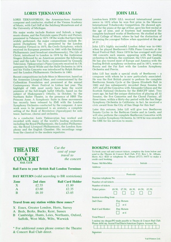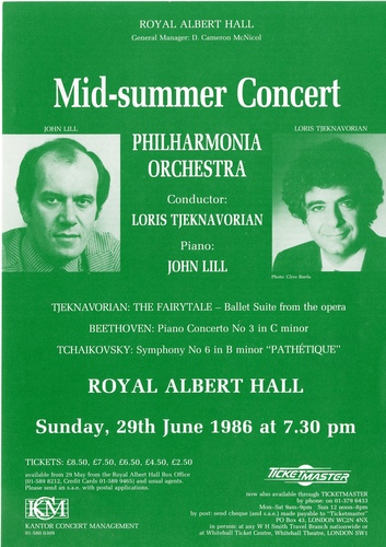| Set List | 'Suite No.1 'Dances and Arias' from The Fairytale, Op.13', Tjeknavorian (Philharmonia Orchestra), 'Dances from the Ballet Othello, Op.31', Tjeknavorian (Philharmonia Orchestra), 'Piano Concerto No.3 in C Minor, Op.37', Beethoven (John Lill, Philharmonia Orchestra) INTERVAL 'Symphony No.6 in B Minor (Symphonie Pathetique)', Tchaikovsky (Philharmonia Orchestra) |