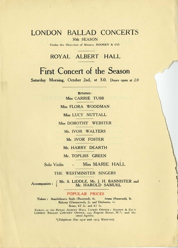 RAHE/1/1915/32London Ballad Concerts (50th Season) - First Concert2 October 1915