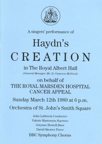 Haydn's 'Creation', in aid of The Royal Marsden Hospital Cancer Appeal