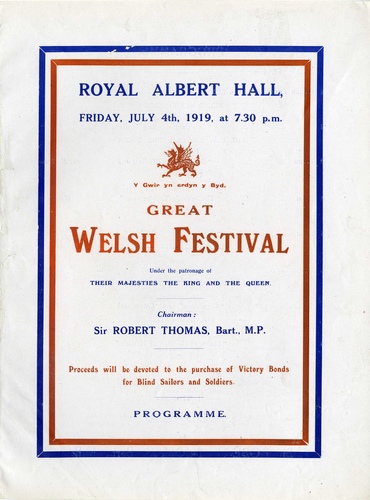 | Set List | Organ Recital (David Richards), Hymn: 'Recessional', F B Dykes (Choir), Song: 'The World's Thanksgiving', E. Montesiore (Annie Rees), Song: 'Land of Hope and Glory', Elgar (Gwladys Roberts, Choir), Violin Solo: 'Fantasie' from Faust, Sarasate (Nanette Evans), 'Gogerddan, Gwcw Fach' (Ben Davies), 'March of the Men of Harlech' (Choir), Aria: 'Mon Coeur S'ouvre A Ta Voix', Saint-Saens (Leila Megane), Song: 'A Song of Thanksgiving', Allitsen (Laura Evans-Williams), 'Rule Britannia' (Choir), Aria: 'Largo Al Factotum', Rossini (David Evans), Harp Solo: 'Fantasie', Saint-Saens (Nancy Morgan), 'God Bless the Prince of Wales' (Choir), 'Hen Wlad fy Nhadau' (Choir, Audience) |