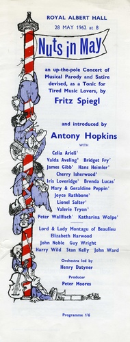 The concert entitled "Nuts in May" was described as "an up the pole concert of musical parody and sature devised as a tonic for tired music lovers. "It was organised "purely for amusement" by Fritz Spiegel, a London Philharmonic Orchestra flute player."