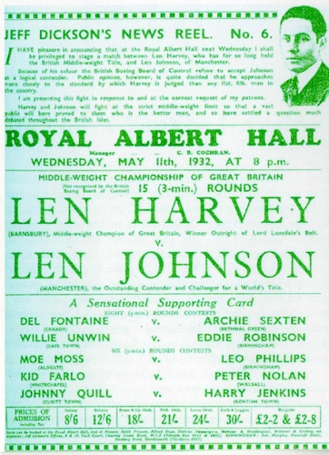 | Main Performers | Len Harvey, Len Johnson, Del Fontaine, Archie Sexton, Willie Unwin, Eddie Robinson, Moe Moss, Leo Phillips, Kid Farlo, Peter Nolan, Johnny Quill, Harry Jenkins - boxers |