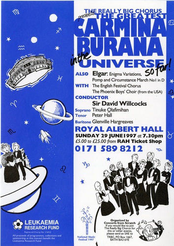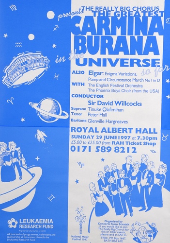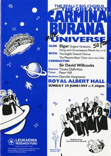 | Set List | 'Enigma Variations', Elgar (The English Festival Orchestra), 'Pomp and Circumstance March No.1 in D', Elgar (The Really Big Chorus, Phoenix Boys Choir, The English Festival Orchestra) INTERVAL 'Carmina Burana', Orff (Ensemble) |