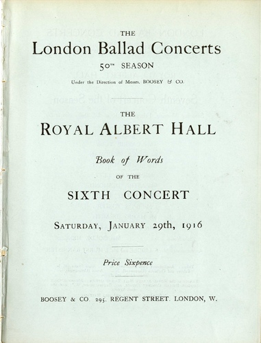 | Set List | 'God Save the King' (National Anthem) and 'Here's a Health Unto His Majesty' (London Choral Society, C H Kempling), 'Earl Bristol's Farewell', C A Lidgey (Ida Kidder), 'When Childher Plays', H Walford Daives (Ida Kidder), 'Ethiopia Saluting the Colours', Charles Wood (Topliss Green), 'The Pearl Cross', Charles Marshall (Phyliss Lett), 'All Joy Be Thine', Wilfrid Sanderson (Philip Ritte), 'I've Been Roaming', C E Horn (Carrie Tubb), Violin Solo: 'Introduction and Rondo Capriccioso', Saint-Saens (Isolde Menges), New Song: 'Top O' the Morning', Wilfrid Sanderson (Ivor Foster), 'Come to the Dance', Herbert Oliver (Flora Woodman), 'Shipmates O' Mine', Wilfrid Sanderson (Norman Williams), 'Dear Love, Remember Me', Charles Marshall (William Boland, Charles Marshall), 'O Beating Waves', Alicia A Needham (TT) 'Drake's Drum' (Songs of the Sea), C V Stanford (Topliss Green, London Choral Society), 'Devon, O Devon' (Songs of the Sea), C V Stanford (Topliss Green, London Choral Society) INTERVAL Russian Folk-Song: 'Song of the Haulers on the Volga', arr. Arthur Fagge (London Choral Society), 'The Maiden Blush' (To Julia), Roger Quilter (Ida Kidder), 'My Life's Delight' (Seven Elizabethan Lyric'), Roger Quilter (Ida Kidder), 'Land of Hope and Glory', Edward Elgar (Phyliss Lett, London Choral Society), New Song: 'Silence and Song', Gerald Grayling (Philip Ritte), 'A Woodland Madrigal', R Batten (Carrie Tubb), Violin Soli: 'Nocturne', Chopin, arr. Sarasate (Isolde Menges), 'Allegro', Fiococco (Isolde Menges), 'I Hear a Thrush At Eve', C Wakefield Cadman (Ivor Foster), 'Border Ballad', Frederick Cowen (Ivor Foster), 'Songs My Mother Sang', A E Grimshaw (Flora Woodman), 'Barnicombe Fair', Kennedy Russell (Norman Williams), 'Into My Heart', Edward Beverley (William Boland), 'O Flower of All The World', Amy Woodforde-Finden (Theresa Tromp), Part-Song: 'A Hymn of the Homeland', Sullivan (London Choral Society) |
