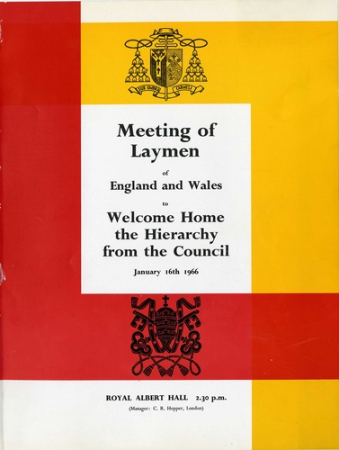 | Main Performers | Dr Joan Brothers, Donald Nicholl, W J Austin Cardinal John Carmel Heenan, Archbishop of Westminster - speakers