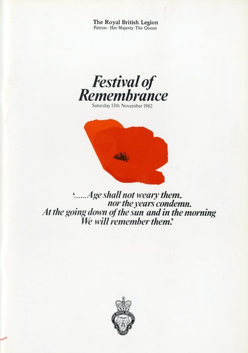 | Set List | Penn and District Royal British Legion Youth Band, 'Royal Fanfare' (State Trumpeters), 'God Save the Queen' (The National Anthem), 'For the Fallen', Laurence Binyon (Choristers of St. Paul's Cathedral), Pipes and Drums of the Ulster Defence Regiment, Army Apprentices College Chepstow Gymnastic Display Team, Continuity Drill Team of the Queen's Colour Squadron, RAF, The RAF Police Dog Demonstration Team, Window Ladder Display (RN Display Team, HMS Excellent)