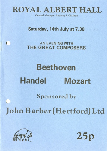 | Set List | 'Zadok the Priest', Handel (New Westminster Chorus, London Mozart Players), 'Symphony No.40 in G Minor', Mozart (London Mozart Players) INTERVAL 'Mass in C Major', Beethoven (Ensemble) |