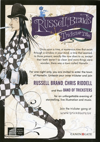 Performance NotesJoin Russell Brand and award-winning illustrator Chris Riddell and their band of tricksters for a one-off, multi-media performance of The Pied Piper of Hamelin at the world-famous Royal Albert Hall. It will feature an extraordinary array of performance talent including the Band of Tricksters, a ten-piece orchestra, playing dozens of wondrous instruments, live art from award-winning children's illustrator Chris Riddell (Goth Girl, The Edge Chronicles), original music by celebrated composer Peter Raeburn and stunning visual effects. It looks set to be an unforgettable event with profits going to literacy charities.