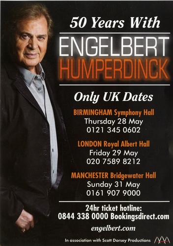 | Performance Notes | One of the strongest and most enduring voices in the business, Engelbert Humperdinck, the man who has sold 150 million albums worldwide, will return to the Royal Albert Hall to celebrate 50 Years with Engelbert. The celebratory concert will see renditions of all the Humperdinck classics, including Please Release Me, Quando-Quando-Quando, The Last Waltz, Am I That Easy To Forget, There Goes My Everything, Les Bicyclettes De Belsize and A Man Without Love. His remarkable voice and extraordinary talent have endeared him to millions of fans around the globe and the MTV generation has just "discovered" this magnificent musician that the rest of the world has celebrated for decades.