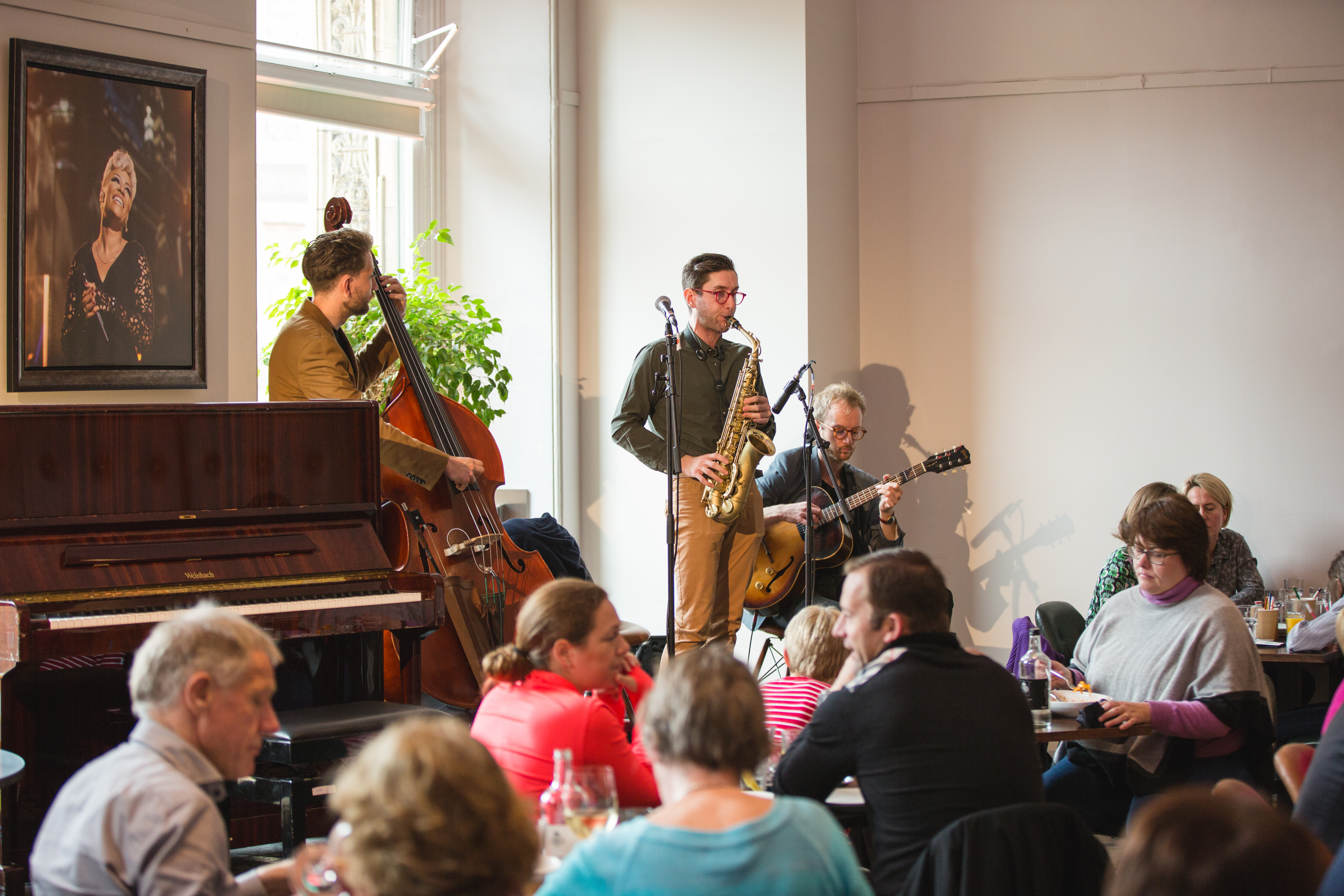 Smittys Big Four is the fiesty little brother of the Kansas Smittys House Band. While the House Band draws its main inspiration from Count Basies hard swinging late night jam sessions in 1930s Kansas City, the Big Four is interested in the music of Sidney Bechet and the upbeat swing of New Orleans. This streamlined formation allows the band to navigate New Orleans and swing standards with unparalleled energy and tightness while maintaining the melodic integrity of the canon. The band features Joe Webb, Giacomo Smith, Dave Archer, and Ferg Ireland. |