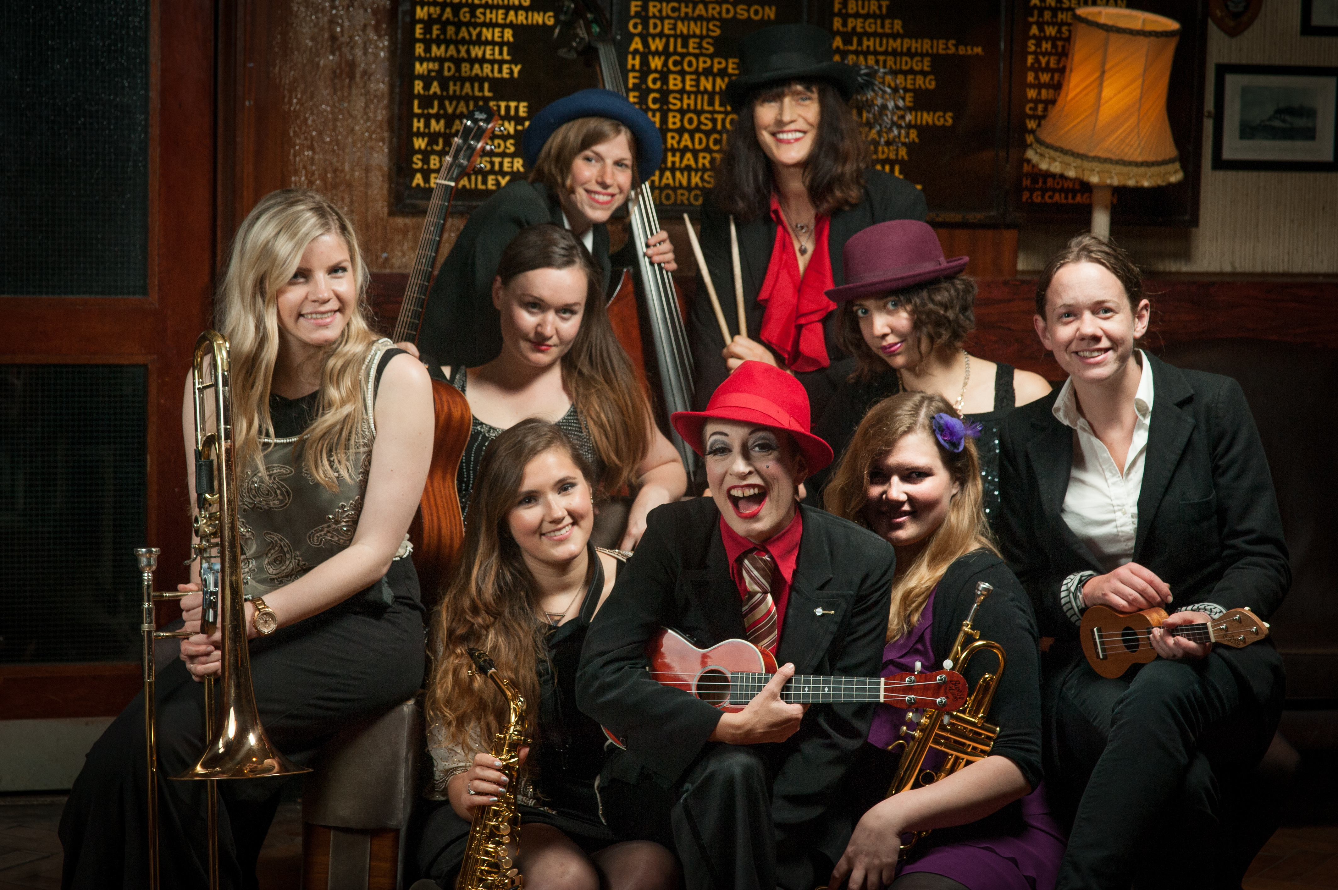 Cheeky, sunny, floor-filling tunes from an all-female ensemble with bags of musical talent and irrepressible charm. Much loved favourites are given the vintage treatment with lush close harmonies, brass, and an old school rhythm section.