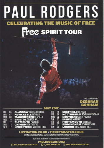 | Performance Notes | Paul Rodgers will return to the Royal Albert Hall as the finale of his 2017 Free Spirit UK Tour, performing songs from the Free catalogue.