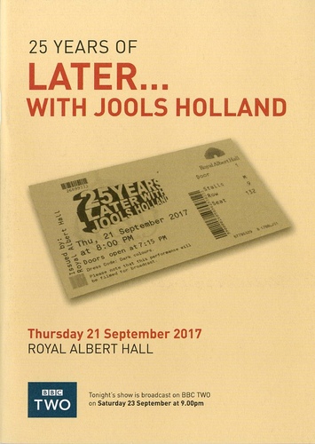 | Performance Notes | Musical virtuoso and legendary television presenter Jools Holland and his much loved Rhythm and Blues Orchestra return to the Royal Albert Hall, for two nights of his trademark boogie-woogie party!