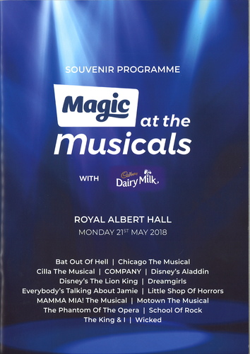 | Performance Notes | For one night only leading cast members from Londons best loved shows will perform at Magic at the Musicals with Cadbury Dairy Milk in the beautiful surroundings of the Royal Albert Hall. Following rave reviews last year, this spectacular sell out- show, complete with 60 piece orchestra, is set to wow audiences all over again.