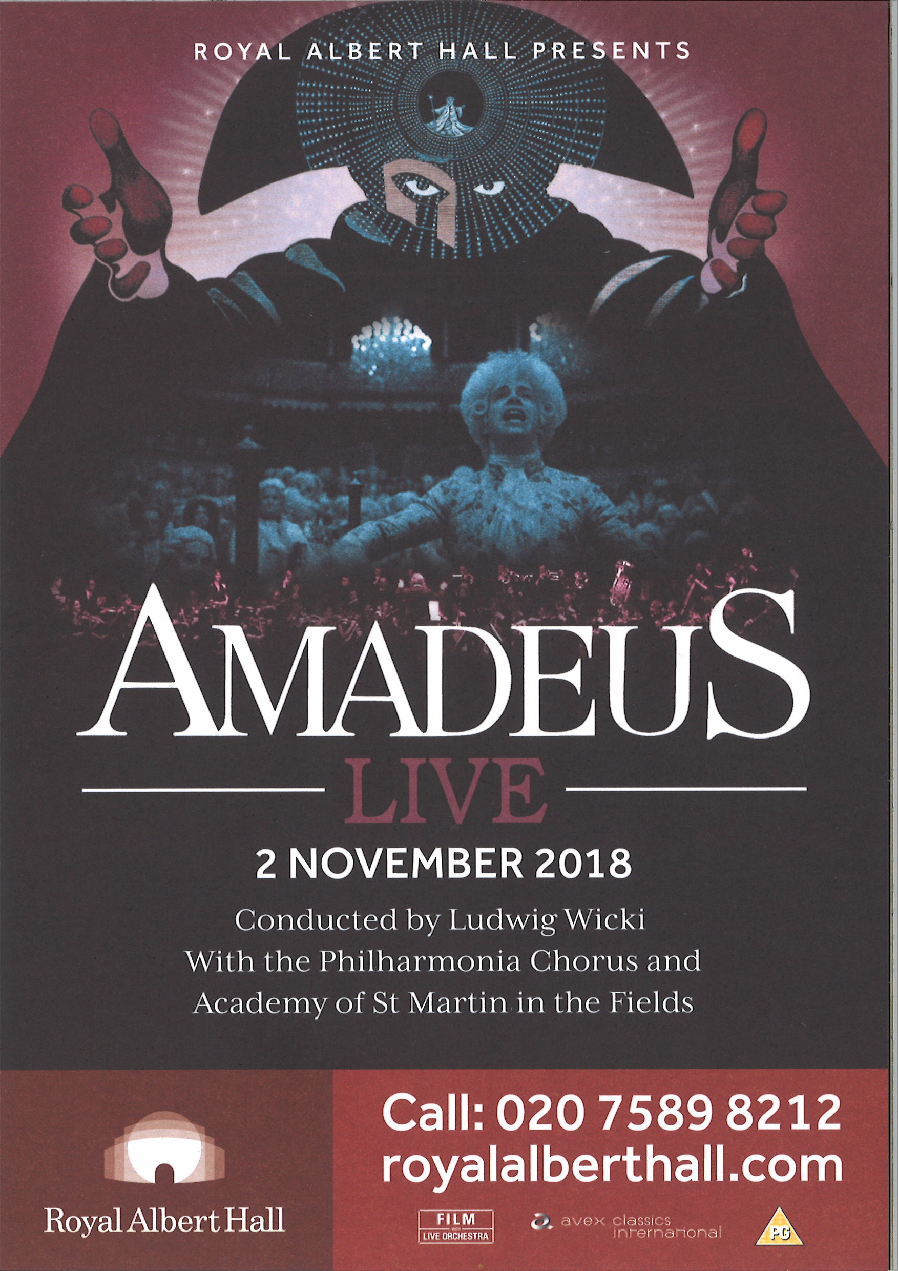 Performance NotesFollowing its first Royal Albert Hall screening in 2016, Amadeus – the most acclaimed film ever made about classical music, returns this autumn with live orchestral accompaniment.