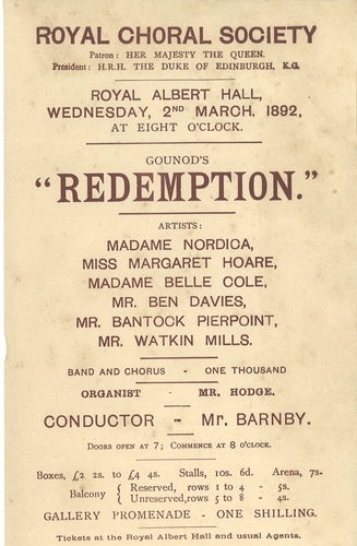 RAHE/6/1892/1Royal Choral Society - Gounod's 'Redemption'2 March 1892
