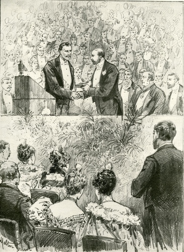 "THE NANSEN MEETING IN THE ALBERT HALL PRESENTATION OF THE SPECIAL MEDAL On Monday, February 8, an audience of about 7000 Fellows and their friends assembled in the Albert Hall, to welcome Dr Nansen, listen to the story of his remarkable enterprise, and witness the presentation of the special gold mdal awarded by the Council... At the table were seated Dr Nansen and Lieut. Scott-Hansen (one of the scientific staff of the Fram), Sir Leopold M'Clintock and Sir George Nares. On the platform, besides the Vice-Presidents and Council, were several foreign ambassadors and ministers, the President of the Royal Society, a number of the British arctic explorers, and othe rdistinguished men. The reception which Dr Nansen met with was of the most enthusiastic character. He held close attention of the audience for nearly an hour and a half, while be told, without the assistance of manuscript, his story of the Fram and the venture of himself and Lieut. Johansen. The story was illustrated with a series of about fifty slides projected on the screen, partly from photographs and partly from Dr Nansen's own coloured sketches. They were admirably executed, clear, and effective, and illustrated in a striking manner the scenes in the midst of which the expedition spent three years, and some of the incidents that occurred. The address wa slistened to with thec closest attention, and enthusiastically applauded." (The Geographical Journal, Vol.9, No.3, March 1897) |