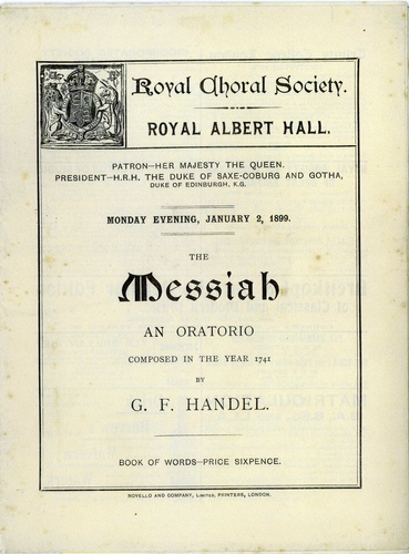 RAHE/1/1899/1Royal Choral Society - (Twenty Eighth Season) Messiah2 January 1899