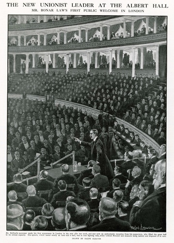 "The Albert Hall has probably never contained a more enthusiastic audience than that whichc greeted Mr Bonar Law, MP....After last night's triumph in the Albert Hall there can be no doubt as to Mr Bonar Law's position in the Unionist party. The delighted cheers which there greeted his crushing indictment of the Government, and his unsparing exposure of the recklessness and trickery on which they have so far thriven, hailed him not merely Leader of the Opposition in the House of Commons, but Leader of the whole party. It was but the third time that he had spoken on the public platform since his unanimous election to the former post. Yet what Unionist, as he reads the speech, will not agree that with the hour come the man?" (The Daily Telegraph, 27 January 1912)