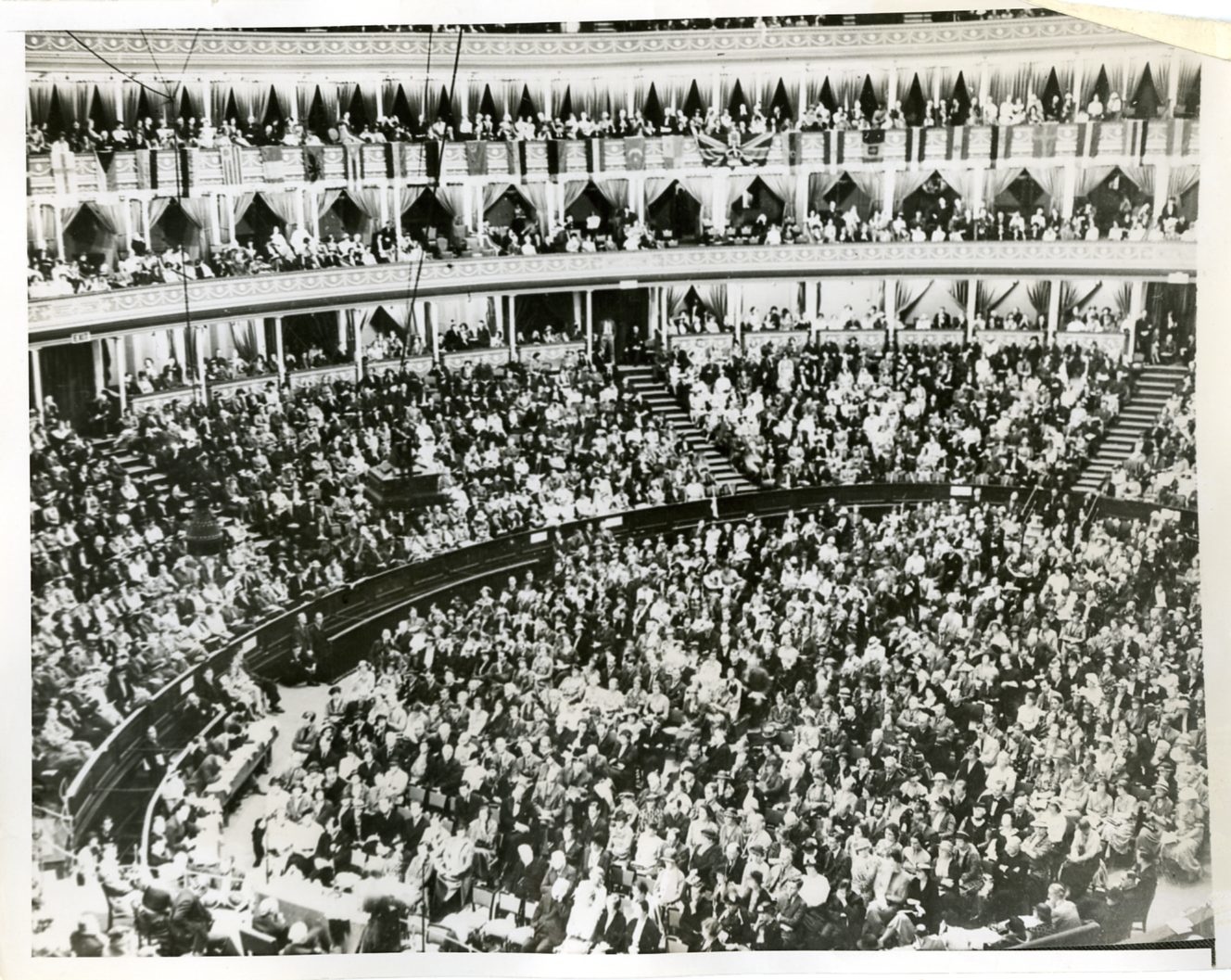 "The final figures of the peace ballot were announced at a meeting held in the Albert Hall under the chairmanship of Lord Cecil. An audience which filled the hall in every part cheered enthusiastically the announcement that nearly 12,000,000 votes had been recorded, with large affirmative majorities on every question." (The Times, 28 June 1935 - part of a longer article) |